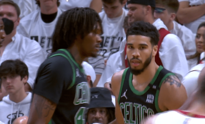 24直播网05月26日讯 NBA东部决赛的比赛继续进行,凯尔行人与热火队第五场的较量,两队迎来了天王山之战,前面的四场比赛,每场比赛的分差都达到了20分以上,上一场的比赛凯尔特人大胜热火队,上半场比赛打完的时候,凯尔特人就已经取得了24分的领先,最终凯尔特人迎来了一场酣畅淋漓的大胜。塔图姆迎来了大爆发,他16投8,罚球16中14轰下了31分8篮板5助攻2封盖的数据,正负值更是高达+37为全场最高,反观热火队这边,首发阵容极度低迷,5人仅仅得到了18分。