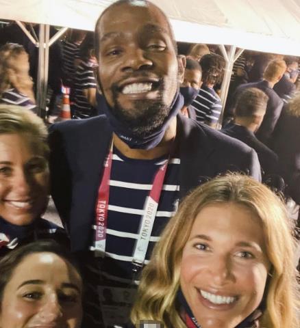 不过来到东京奥运会的舞台上,虽然杜兰特首战只有14投4中,仅仅拿到10分的表现,可是球场外的杜兰特可是桃花朵朵开,比如说在开幕式上,比利时女篮的美女球员朱莉就向杜兰特示爱。