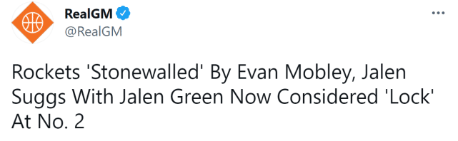 美媒报道称,杰伦-格林很想成为状元,但如果他被火箭用榜眼签选中,也会很开心。此前,在一次社媒直播中,格林公开表示自己和小波特会成为很好的后场组合。 火箭曾经在萨格斯、莫布里和格林之间出现选择困难,内部甚至产生了一些分歧,但随着萨格斯和莫布里拒绝为火箭试训,他们选择这两位新秀的可能性已经不大了。