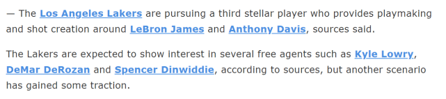 24直播网讯 北京时间7月26日,名记查拉尼亚和沃纳罗斯基都报道了湖人的最新运作。这支在本赛季首轮就被淘汰的劲旅,正试图在休赛期补强阵容,力争在2021-22赛季重夺总冠军。