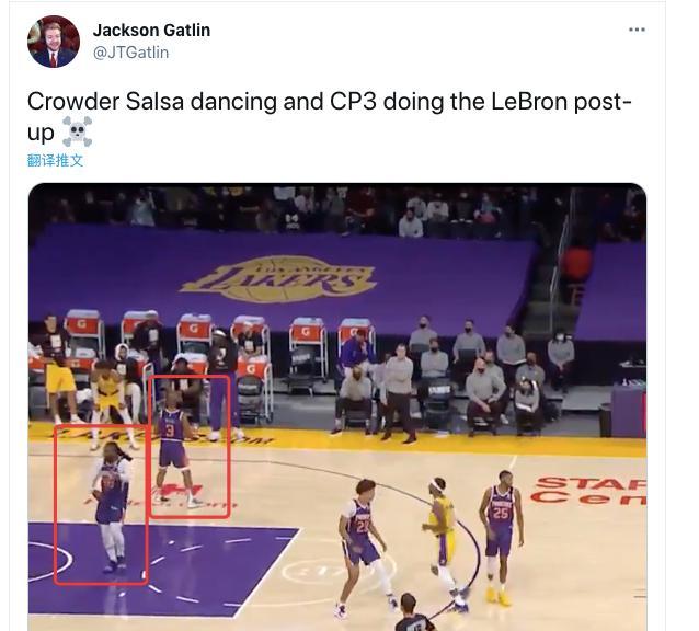 最后一场比赛结束前,克劳德在球场上跳起了舞蹈,被认为这是嘲讽的一种行为!因为他跳的这个舞蹈是模仿的詹姆斯在一段代言饮料广告中的舞蹈动作,今日一位网友晒出了克劳德跳舞的图片并附文““我不想这么做,因为我在支持太阳……但是在首轮获胜后就喷洒香槟并不明智。”