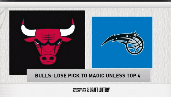 公牛也是一样的,他们只有抽中前4顺位才会受保护,无缘前4就属于魔术,这是在本赛季和武切维奇的交易中送出的。他们获得第5顺位,属于魔术了。