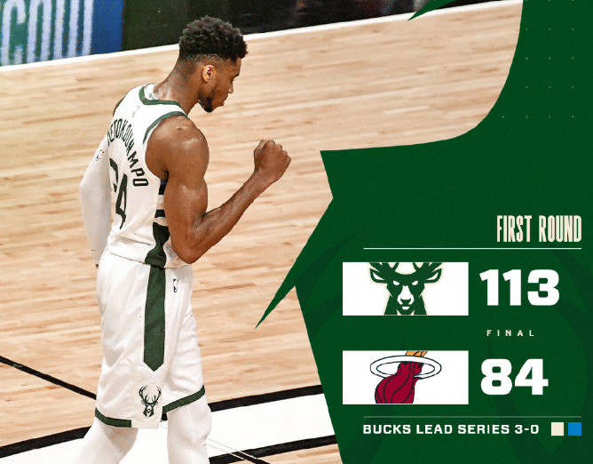 24直播网讯 北京时间5月28日,NBA季后赛,雄鹿和热火的强强对决。首轮前两场,雄鹿在G1完成绝杀之后,第二场狂胜热火34分。在2-0领先之后,在很多人看来,热火基本没戏了,很可能会横扫去年的总决赛亚军。而今天的比赛,雄鹿再次大胜热火,成为联盟首组3-0球队,即将横扫热火,如果G4雄鹿不放水的话,基本上能4-0横扫,实在太强势了。