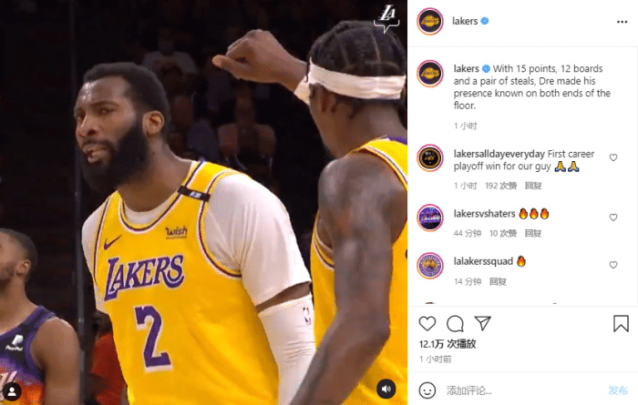 24直播网讯 北京时间5月27日,湖人官方更新动态,晒出“庄神”德拉蒙德的G2集锦,并且写道:15分12篮板2次抢断,德拉蒙德在攻防两端都表现出色;詹姆斯转发湖人动态,配文:他做到了,巨大的胜利。
