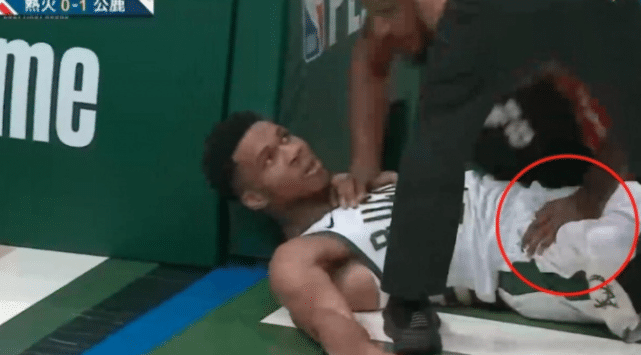 在和字母哥一起摔倒地上后,阿里扎更是毫不留情地摁着字母哥的身体起身,阿里扎的系列争议动作让他吃到了一级恶意犯规,而面对争议,字母哥显得很淡定,哪怕被阿里扎摁着起身,字母哥全程没有任何反应,直到起身后才找到裁判投诉。