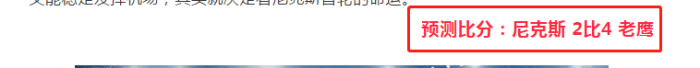 而尼克斯和老鹰,比较难预测。尼克斯的锋线实力出众,而老鹰队有特雷杨这位超级新星,两队各有优势和劣势,谁能晋级,就看临场发挥了。