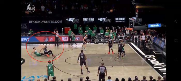 杜兰特的这个动作是故意的吗?事实上从防守的慢镜头来看,我们能清晰地看到杜兰特并没有任何主动去伤害塔图姆的动作,会产生这样的后果,更多是杜兰特上扑太猛,侵犯了塔图姆的圆柱体,随后两人发生碰撞,才有了杜兰特坐在塔图姆脚踝上的一幕。