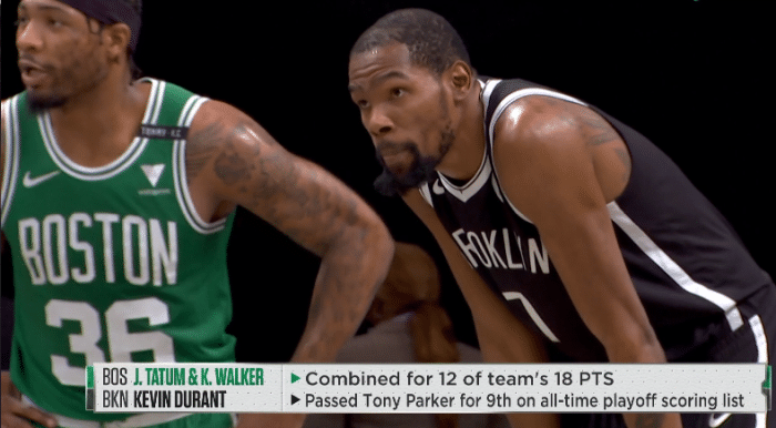 比赛开打后,欧文传球失误、哈登投篮打铁不中,塔图姆连续两次突破得分,欧文大号中投、哈登戏耍对手抛投得分;随后斯玛特、沃克和塔图姆连续命中三记三分,凯尔特人13-4开局,纳什依旧不喊暂停;乔哈突破撞开塔图姆轻松上篮,杜兰特连续两次杀到禁区暴扣。