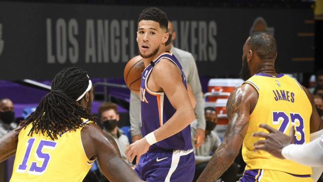 24直播网讯 北京时间5月21日,NBA官网对湖人和太阳的这轮西部季后赛进行前瞻和预测,认为双方将大战6场,最终湖人会以4-2的总比分晋级西部半决赛。在解析这轮系列赛时,官网列出了三大看点——