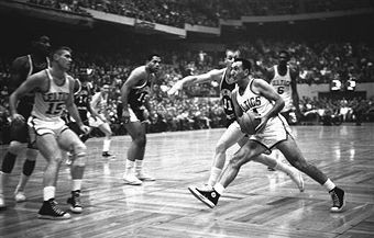 得分机器争奇斗艳,不妨碍凯尔特人队继续王朝之旅。这是比尔·沙曼的最后一个赛季,由于萨姆·琼斯进入首发,他的出场时间有所减少。本赛季常规赛场次增加到了79场,凯尔特人队独孤求败,以57胜笑傲联盟,比尔·拉塞尔第2次荣膺常规赛MVP。4:1淘汰民族队后,凯尔特人队与51胜的西部老大老鹰队会师总决赛。这是5年两队第4次争夺总冠军,同时也是这对冤家最后一次华山论剑,这个赛季后老鹰队就再也没打进过总决赛,风光一时后归于沉寂。4次总决赛碰撞中,这是最没有悬念的一次,凯尔特人队毫无悬念地以4:1的总比分达成历史上的第2次三连冠。