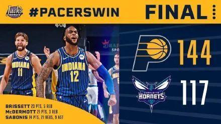 最终步行者144-117将黄蜂淘汰出局,他们还需一场比赛,才能决定是回家还是征战季后赛。