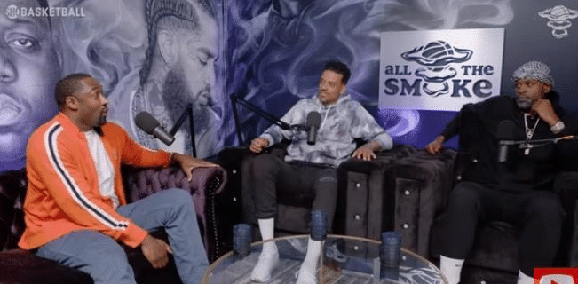 24直播网讯 北京时间5月19日,前NBA球员阿里纳斯做客斯蒂芬-杰克逊和马特-巴恩斯的脱口秀节目《All The Smoke》。他在节目中选出了自己心中的历史前五纯得分手!
