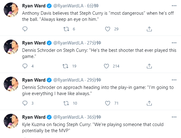 湖人全队训练之后,众球员接受采访,浓眉、施罗德、库兹马都盛赞库里。
