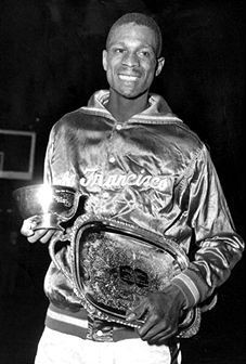 继设立年度最佳新秀奖之后,联盟又于这个赛季首度推出常规赛最有价值球员(即MVP)奖项。首届常规赛MVP被“获奖专业户”鲍勃·佩蒂特摘下。之前一个赛季,老鹰队的战绩只有可怜的26胜46负。休赛期,老板将球队搬到了圣路易斯。来到新的城市后,老鹰队的战绩有所提升,多赢了7场比赛。毋庸置疑,球队的进步应该归结于佩蒂特的飞速成长。这个赛季,佩蒂特场均轰下25.7分,结束了湖人队和勇士队对得分王长达7年的垄断(麦肯3次,阿里金和约翰斯顿4次)。另外,他还以场均16.2个篮板获得篮板王,成为NBA历史上第二位单季包揽得分王和篮板王的球员,第一个是勇士队的约翰斯顿。MVP设立之初,不像今天这般过多考虑球队战绩,佩蒂特获得首届MVP在情理之中。值得一提的是,佩蒂特还获得了1956年全明星赛的MVP,那场比赛他砍下20分和24个篮板,还送出了7次助攻。