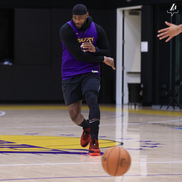 不过浓眉和施罗德都穿着球衣来到训练馆,湖人官方晒出球员训练照,詹姆斯又是穿6号球衣训练,传球时表情太抢戏,这应该是一次击地传球。