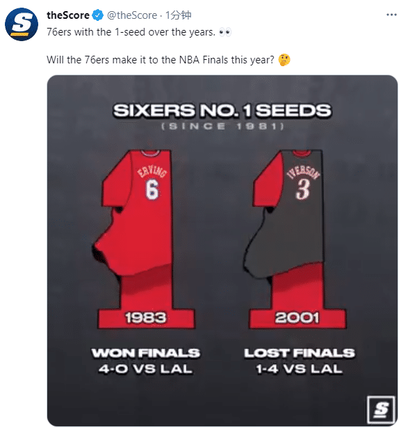 美媒The Score发推写道:费城今年能杀进总决赛吗?