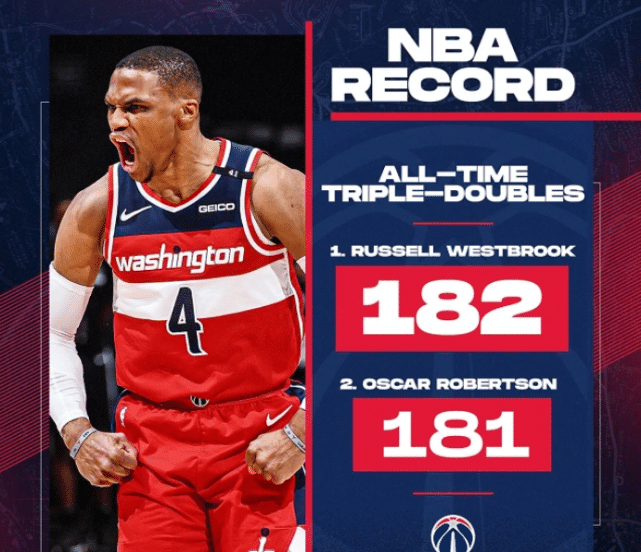 在奇才和骑士队比赛前,奇才主场举办了简单的仪式为威少颁发182场三双特制纪念版球衣,表彰威少这个赛季神奇的表现,已经他在三双领域独一无二的历史地位。