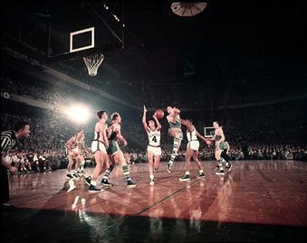 这个赛季,阿里金仍在服兵役,其勇士队队友内尔•约翰斯顿蝉联得分王。凯尔特人队的黄金后场搭档持续惊艳,鲍勃•库西以场均7.2次助攻蝉联助攻王,场均19.2分高居得分榜第二,比尔•沙曼场均交出16分之余,继续霸占罚球命中率第一(84.4%)的王座,而且45%的中投命中率也攀升到了联盟第2,排在前面的是队友ED•麦考利。