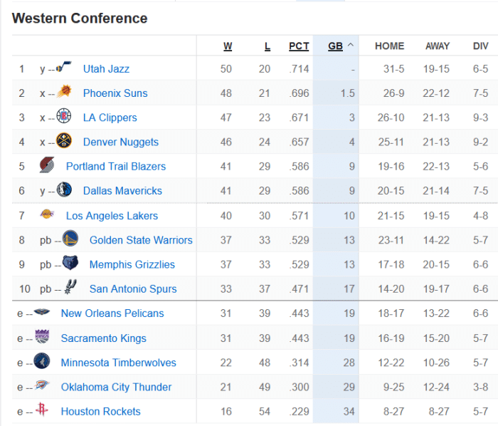现在第7还有一定悬念,湖人要对阵步行者和鹈鹕,开拓者和独行侠也都剩下两场比赛,湖人只有连胜,而独行侠或开拓者连败,湖人才有反超的希望。现在来看,第5到第7的悬念也还有,西部的最终排名悬念,也成为未来两场常规赛的看点。