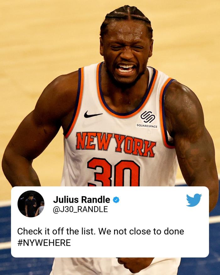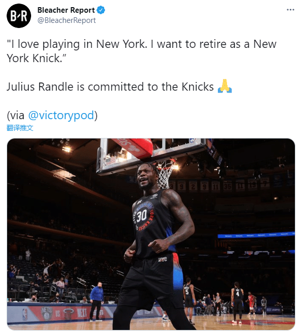 24直播网讯北京时间5月14日,尼克斯核心球星表忠心,朱利叶斯-兰德尔公开表态想终老在尼克斯,他表示:我喜欢在纽约打球,我想以纽约尼克斯球员的身份退役。