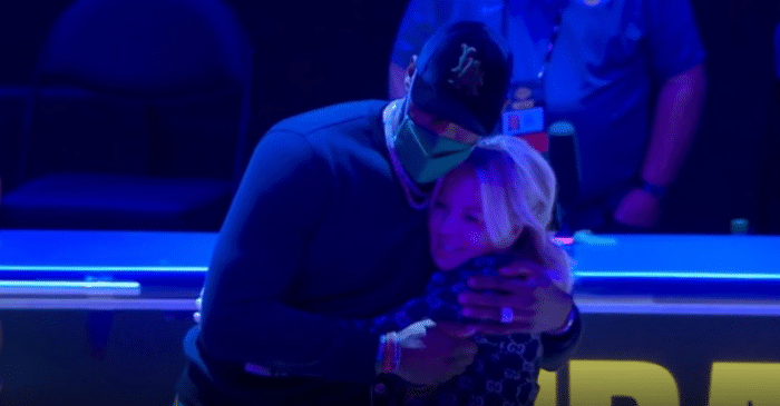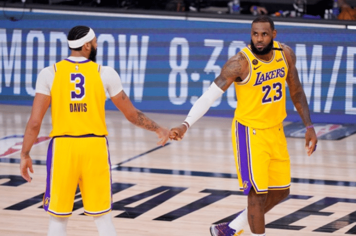 湖人老板拥抱了詹姆斯和浓眉,在巨人怀中小鸟依人,而詹姆斯和浓眉作为球员代表,进行讲话,詹姆斯表示,卫冕之旅即将开始。“背靠背卫冕之旅将在一周后正式开启”,随后,浓眉表示,他同意勒布朗的看法,夺冠是唯一目标。目前,湖人排在西部第七,还要为季后赛名额而战,很可能会打附加赛。