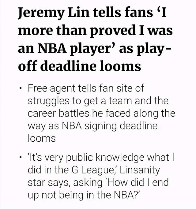 根据林书豪近日接受采访时透露的信息,我们可以知道一些事情。林书豪认为自己在发展联盟中的表现已经完全证明了自己的实力,但他仍然被要求需要证明自己。林书豪认为自己已经证明了自己是一个顶级球员,并且也有NBA级别的水平,他可以做到一些别人不知道他可以做到的事情。但是还是有很多黑子和瞎子都不愿意承认这些事情,他们还是看不到林书豪优秀的表现。