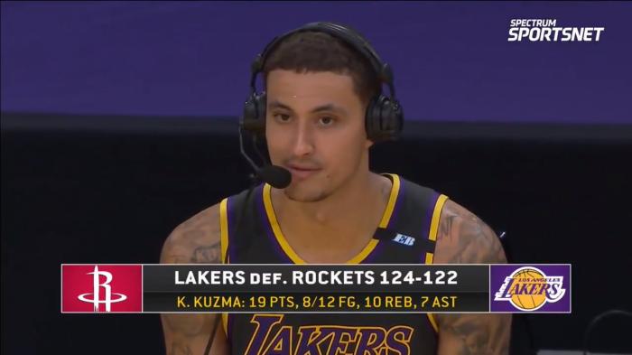 24直播网讯 今天早些时候湖人124:122击败了火箭队取得了三连胜,全场比赛他们痛击火箭内线豪取86分创造了队史纪录,库兹马完成了绝杀抛投,马修斯和小塔克联手抢断了奥利尼克赢下了比赛!
