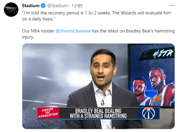 24直播网讯 北京时间5月12日,此前奇才官宣比尔因腿筋伤势至少缺席两场比赛,可如今比尔腿筋伤势或让他无法出战附加赛;据名记shams报道,比尔遭遇一级腿筋拉伤(拉伤分为三级,一级为最轻),伤病恢复期为1-2周,这意味着他很可能伤停1-2周。