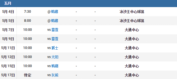接下来勇士还剩下7场比赛,对手分别是两战鹈鹕和雷霆、面对西部前列的太阳和爵士,还有最后一轮没有确定比赛时间的对手是灰熊,这其中除了5日再战鹈鹕是客场之外,其他的6场比赛都是在主场大通中心进行。