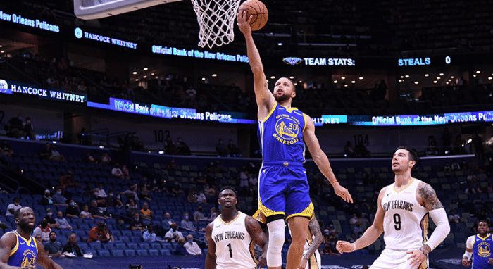 24直播网5月4日讯 今天勇士对阵鹈鹕的比赛备受瞩目,鹈鹕志在冲击附加赛,而勇士则要力争取得好的名次。最终勇士以123-108击败鹈鹕,迎来2连胜。此役库里表现强势,他首节就砍下17分,半场轰下21分带队取得领先,全场砍下41分4板8助攻,库里第9次40+,联盟第一。