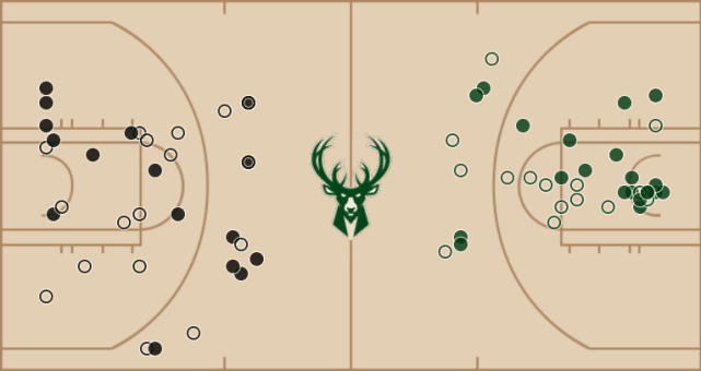 24直播网讯北京时间5月3日,雄鹿主场117-114险胜篮网,字母哥和杜兰特上演了一场“神仙打架”般的对决。字母哥36投21中,三分8投4中,得到49分8篮板4助攻1抢断3盖帽;杜兰特33投16中,三分13投7中,得到42分10篮板2助攻1抢断。两人在比赛中的巨星碰撞,让球迷连呼过瘾!美媒晒出了两人本场的投篮热图。