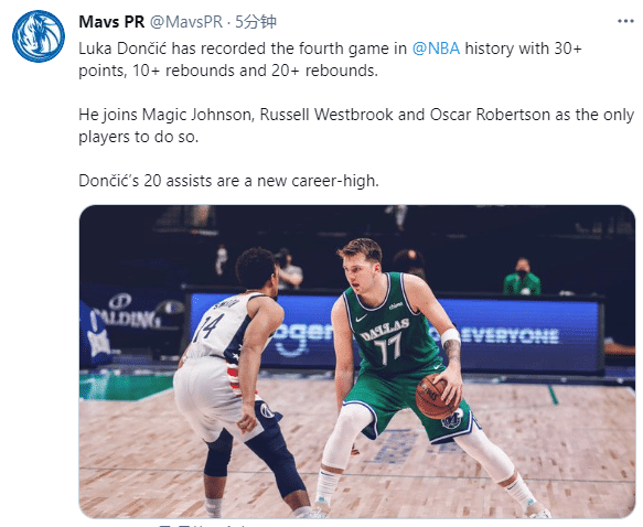第三、东契奇成为NBA近60年第一位对阵奇才轰下30+20+10三双的球员,上一位是1961年的罗伯特森。