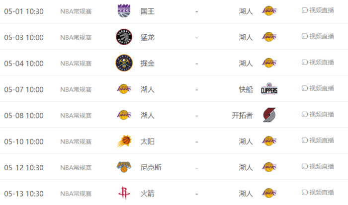 可以看出湖人接下来的对手实力都很强,或者是都有自己的目标,除了没有季后赛希望的火箭、接近出局的国王,其他的球队包括争夺季后赛附加赛席位的猛龙、鹈鹕,有卡位需要的开拓者、尼克斯和步行者,还有掘金、太阳和快船,都是西部的强敌,是湖人的主要竞争对手。