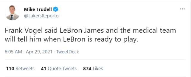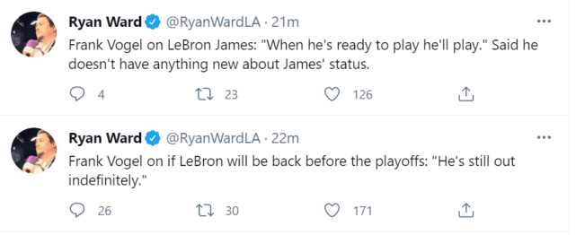 “当他做好准备上场后,他就会上场打球,”沃格尔说道,他表示自己并没有新的信息可以分享,与此同时,他还表示何时复出的决定权并不在自己手中,“当他做好准备后,詹姆斯和医疗团队会告诉我的。”