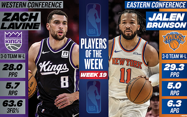 24直播网讯北京时间3月4日,NBA官方揭晓了2024-25赛季第19周东西部周最佳球员归属。纽约尼克斯队的杰伦-布伦森与萨克拉门托国王队的扎克-拉文分别凭借统治级表现荣膺殊荣,而勒布朗-詹姆斯、斯蒂芬-库里、卢卡-东契奇等超级巨星虽提名却未能折桂。