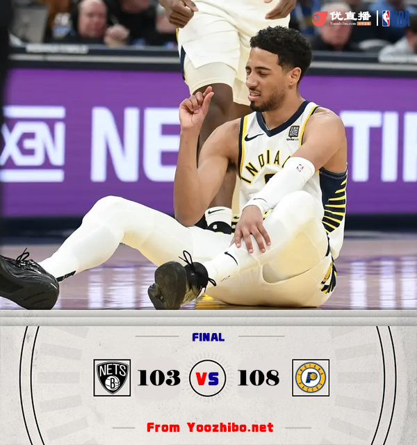 24直播网讯:北京时间3月23日NBA常规赛,主场作战的步行者以108-103击败篮网,步行者取得4连胜,篮网遭遇3连败。哈利伯顿16分8篮板12助攻,沃特福特26分5篮板1助攻。