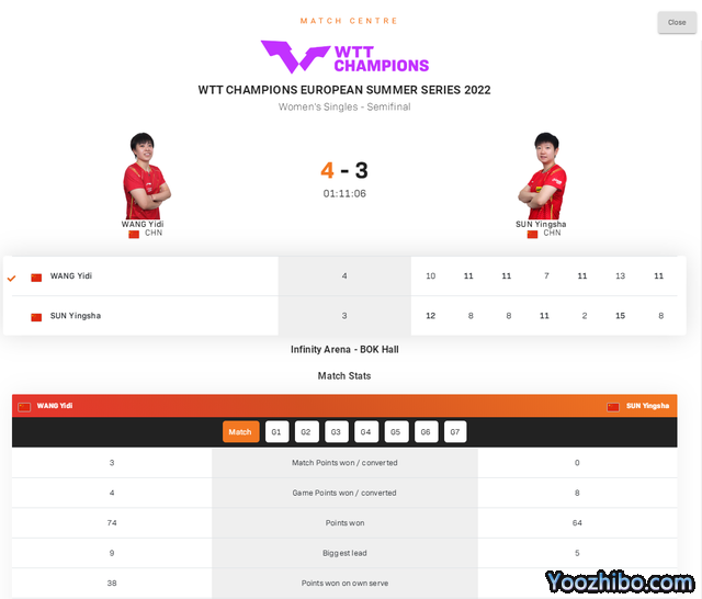 第七局比赛,相比较孙颖莎,王艺迪的表现要更加稳定,孙颖莎会出现一些没有必要的失误,而且状态也出现了起伏,而王艺迪状态始终如此,平稳打每一个回合。最终她也以11-8赢下了决胜局,大比分4-3淘汰孙颖莎,与王曼昱会师女单决赛。