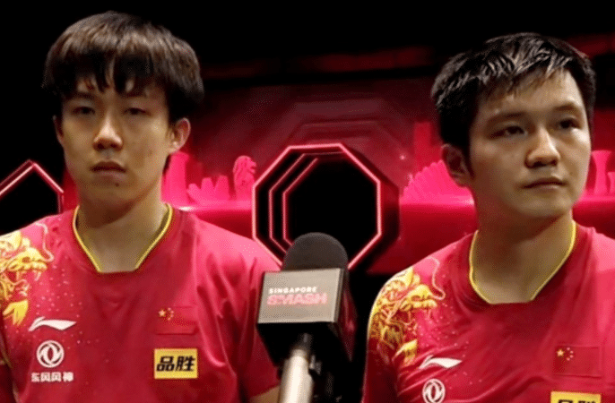 24直播网03月15日讯 WTT新加坡大满贯男双1/8决赛结束一场焦点战,“胖头组合”樊振东和王楚钦3-1击败冯耀恩和郭勇,晋级男双八强。这场比赛期间樊振东遇到伤病的冲击,他再度扭到腰部,继续坚持,与王楚钦拿下胜利。