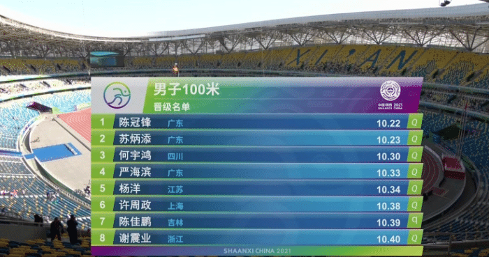24直播网9月20日讯 ,全运会田径赛场,男子100米开始了争夺,参赛的国内好手云集,其中包括了苏炳添、谢震业和吴志强等等。这其中苏炳添迎来了自己奥运会的首秀,他在预赛第4组的第5道出战,一出场就引发了欢呼。最终苏炳添跑出了10秒23,成功的以小组第一、预赛总成绩第二名的身份晋级到半决赛。