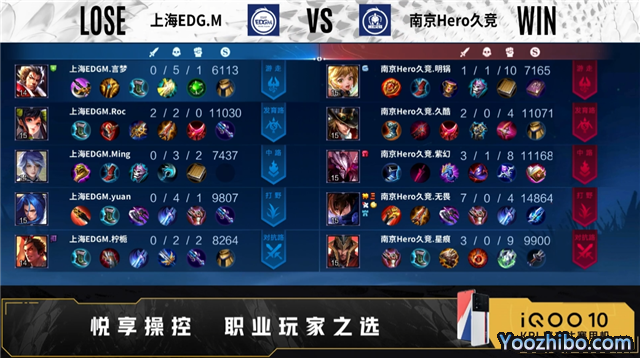 开局双方正常抢线。1分25秒野区南京Hero久竞澜击杀张飞,拿下一血,澜二连击破,打出0换2。2分12秒南京Hero久竞拿下暴君,4分32秒摧毁敌方对抗路外塔。5分10秒野区南京Hero久竞击杀弈星,拿下主宰。6分20秒发育路南京Hero久竞击杀张飞,摧毁敌方发育路外塔。6分52秒野区南京Hero久竞击杀橘右京,澜二连击破,蒙恬二连击破,打出0换4,摧毁敌方发育路二塔、中路外塔、二塔、对抗路二塔,拿下暴君。9分13秒上海EDG.M摧毁敌方对抗路外塔。10分13秒南京Hero久竞拿下暗影暴君,野区击杀张飞。10分44秒南京Hero久竞摧毁敌方发育路高地,拿下暗影主宰。11分49秒中路上海EDG.M击杀孙膑,打出1换2,南京Hero久竞摧毁敌方中路高地、对抗路高地。13分51秒高地南京Hero久竞击杀张飞,打出0换1。14分39秒南京Hero久竞拿下暗影暴君、暗影主宰。15分49秒高地南京Hero久竞击杀孙尚香,澜三连决胜,打出0换5,团灭对手摧毁水晶拿下比赛。