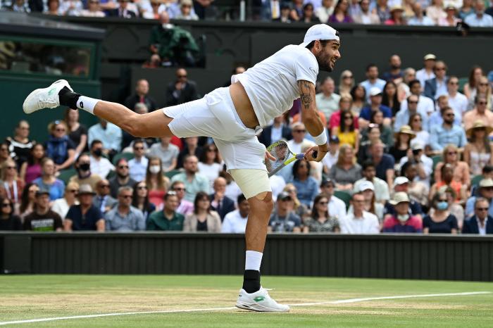 莫拉托格鲁接着说:“虽然他的反手击球较弱,但贝雷蒂尼已经练就了一个非常棒的削球技术,这在草地上非常理想。他用它来迫使对手向上击球,让他有更多正手进攻的机会。”