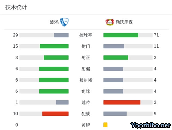 最终勒沃库森1-1战平波鸿,药厂连续三轮联赛都取得平局。