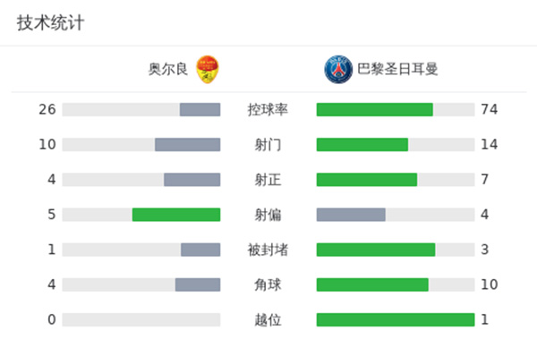 巴黎4-1奥尔良 姆巴佩2射2传&近6场10球4助