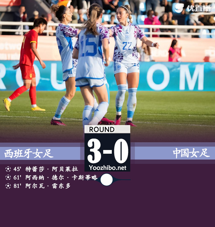 [进球视频] 中国女足0-2落后西班牙!阿西娜劲射破门再下一城