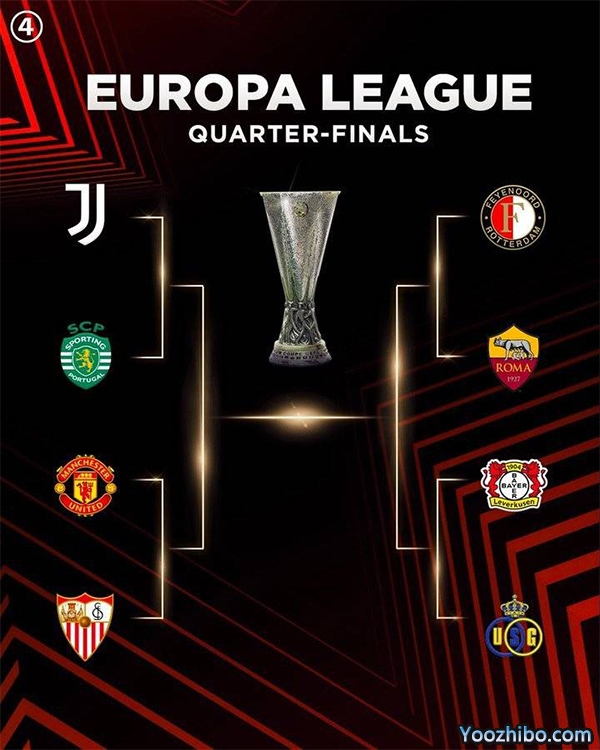 24直播网讯 北京时间3月17日20点,2022-23赛季欧联杯1/4决赛及半决赛抽签结果出炉:曼联VS塞维利亚、尤文图斯VS葡萄牙体育、勒沃库森VS圣吉罗斯、费耶诺德VS罗马。
