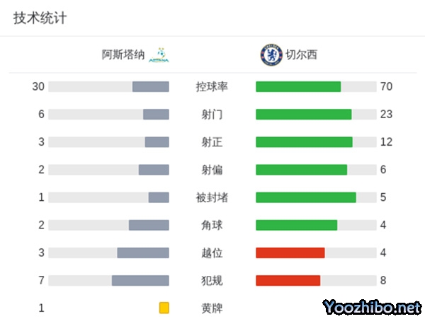 最终,切尔西3-1阿斯塔纳。