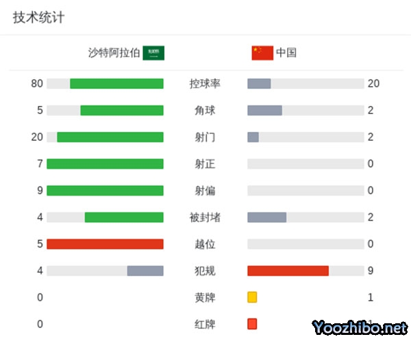 24直播网讯 北京时间3月21日世界杯亚洲区预选赛第三阶段(18强赛)第七轮,沙特阿拉伯与中国展开较量。上半场王上源染黄下轮停赛,布歇尔击中横梁,加姆迪进球被吹,蒋光太拉伤被替换下场,林良铭蹬踏踢人被直接红牌罚下,下半场达瓦萨里禁区中路破门,叶海亚破门被吹越位,王大雷多次扑救。最终,沙特阿拉伯以1-0的比分战胜中国,全取三分。