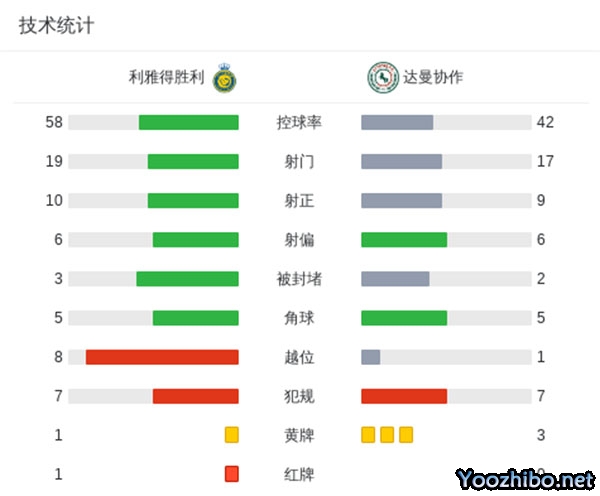 最终利雅得胜利2-3达曼协作先赛距榜首8分。