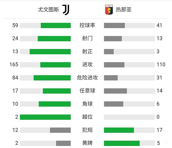 查看:尤文图斯vs热那亚 全场录像技术统计: