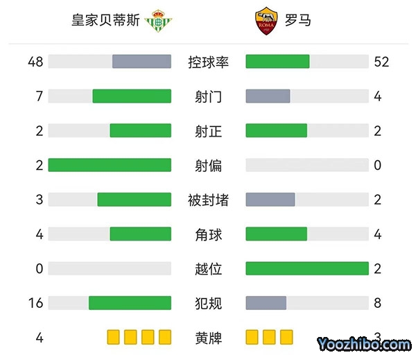 24直播网讯:北京时间10月14日0:45,欧联杯小组赛C组第四轮,罗马作客洛佩拉球场挑战皇家贝蒂斯。上半场,佩莱格里尼禁区内凌空抽射造险,胡安-米兰达错失近距离头球良机,卡纳莱斯远射打在伊巴涅斯身上折射破门,贝洛蒂补时阶段破门被吹越位在先。下半场,贝洛蒂接卡马拉横传打空门得手扳平比分,此后双方再未觅得破门良机,最终皇家贝蒂斯在主场1-1战平罗马,提前锁定小组出线资格。